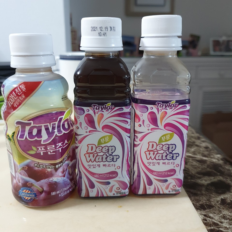 푸룬 말린걸 먹다가 쥬스가 변비에 효과가 있다고 하여 테일러 푸룬 쥬스를 사고 비교해 보기위해 올리브영에서 파는 딥 워터 푸룬쥬스를 샀습니다.