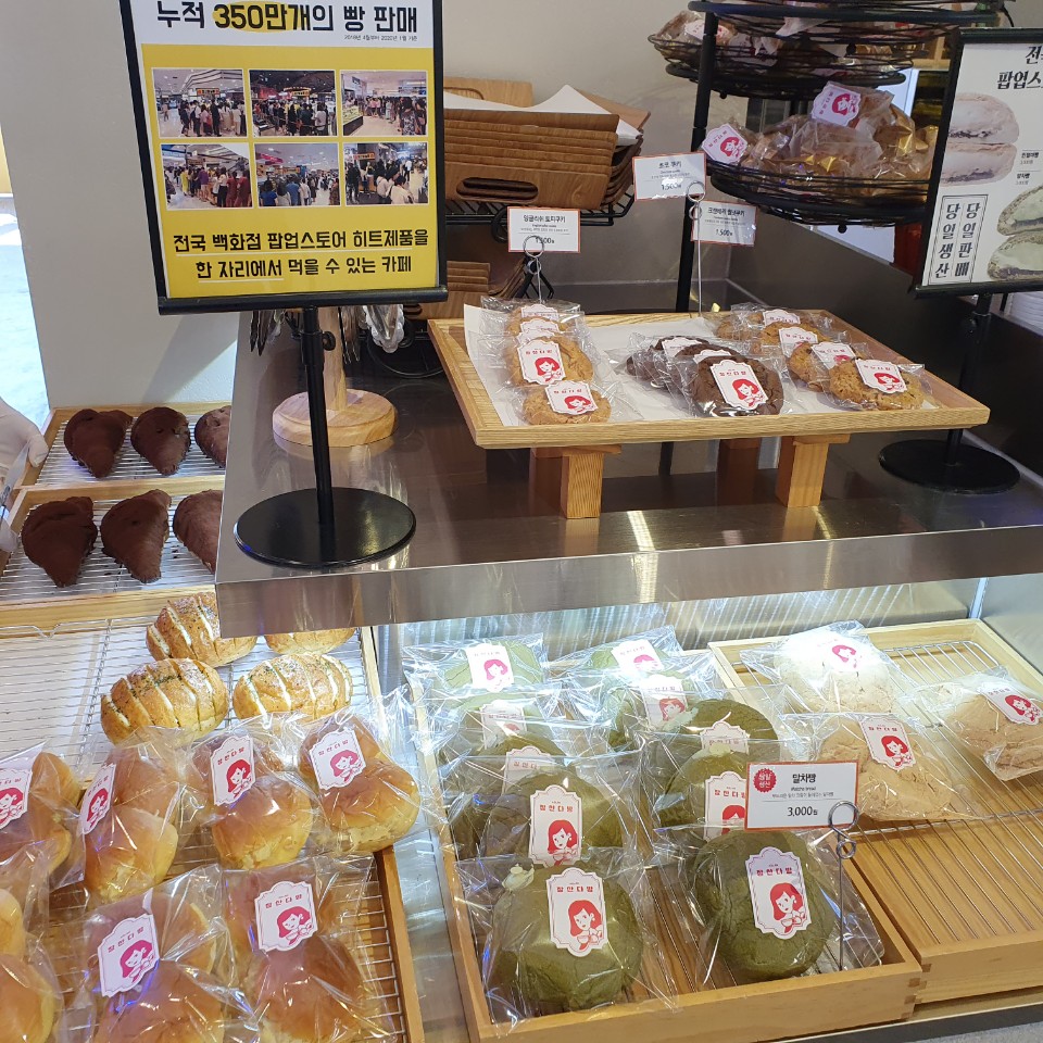 아슬란 장산다방에 들어서니 누적 350만개라는 빵을 판매하고 있다는 빵이지만 코로나때문에 카페는 사람이 없고 빵만 간간이 사갔습니다.