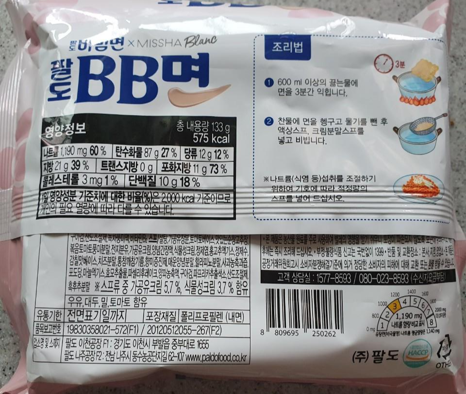 매운걸 좋아하시는 분들은 팔도BB면 드시면 좋아하실 것 같아요