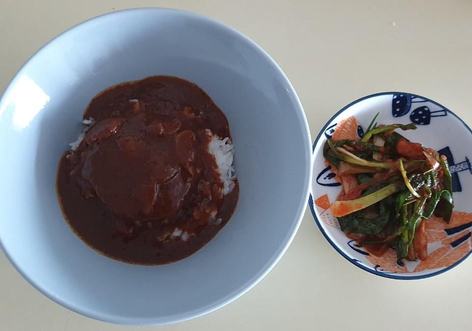 밥에 패티를 잘게 자르고 소스를 비벼 파김치랑 먹으니 정말 맛있었습니다. 사실 그렇게 기대를 하지 않고 먹었는데 밥과 너무 잘 어울렸습니다.