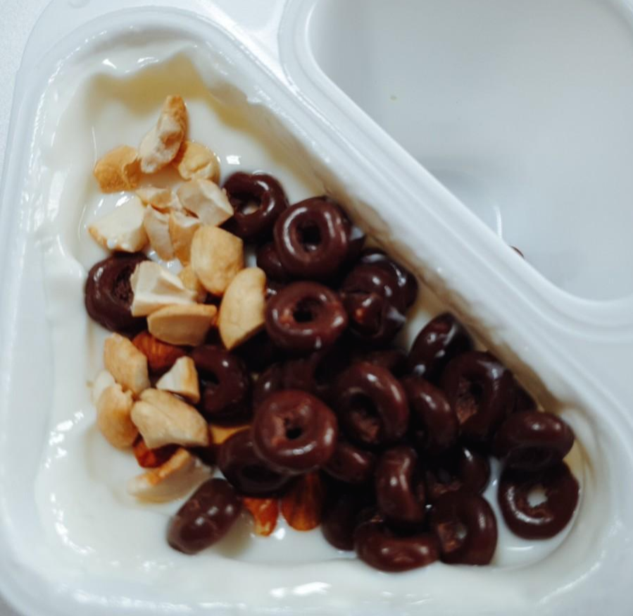플레인에 비해 초코링이 적어 초코링이랑 제가 좋아하는 아몬드랑 캐슈넛을 함께 넣었습니다. 캐슈넛은 요거트랑 먹으면 흡수가 잘된다기에 항상 넣어 먹습니다.