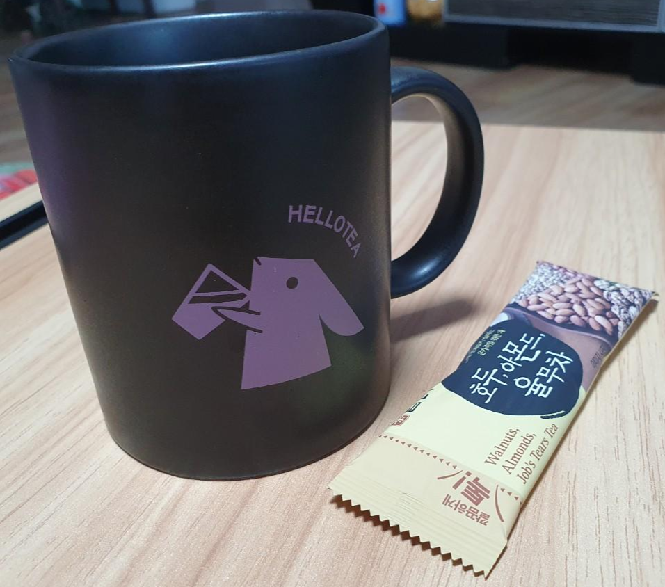 우연히 안경 맞추려고 갔다가 기다려면서 마실 수 있는 차 코너에서 담터 호두 아몬드 율무차를 발견하고 타 먹어봤더니 고소하면서 맛있더라구요.