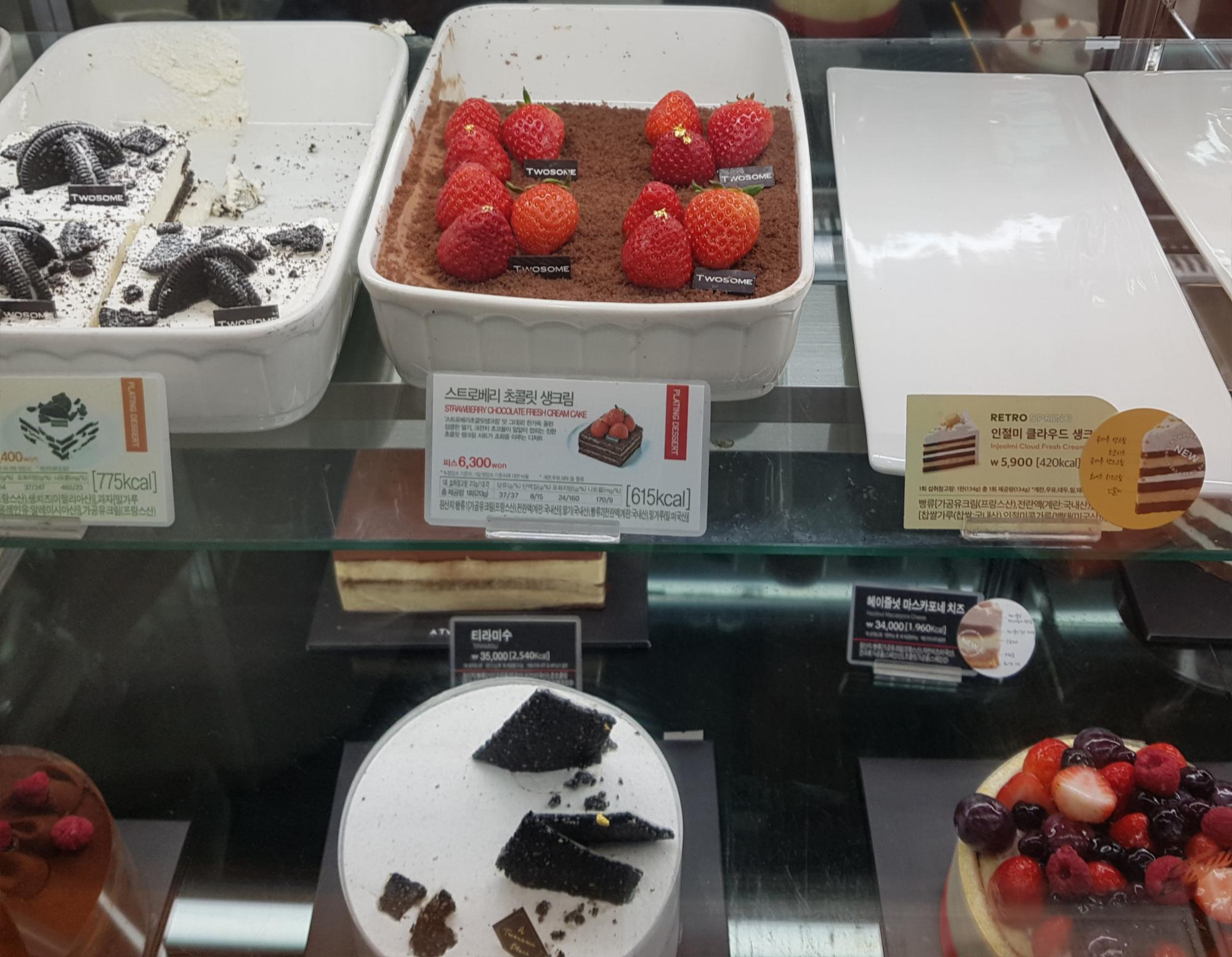 투썸플레이스에서 가장 유명한 스트로베리 초콜릿 생크림케이크,(6300원) 봄 신제품 쑥라떼(5500원) 그리고 케이크와 함께 마실 아메리카노를 주문했어요.