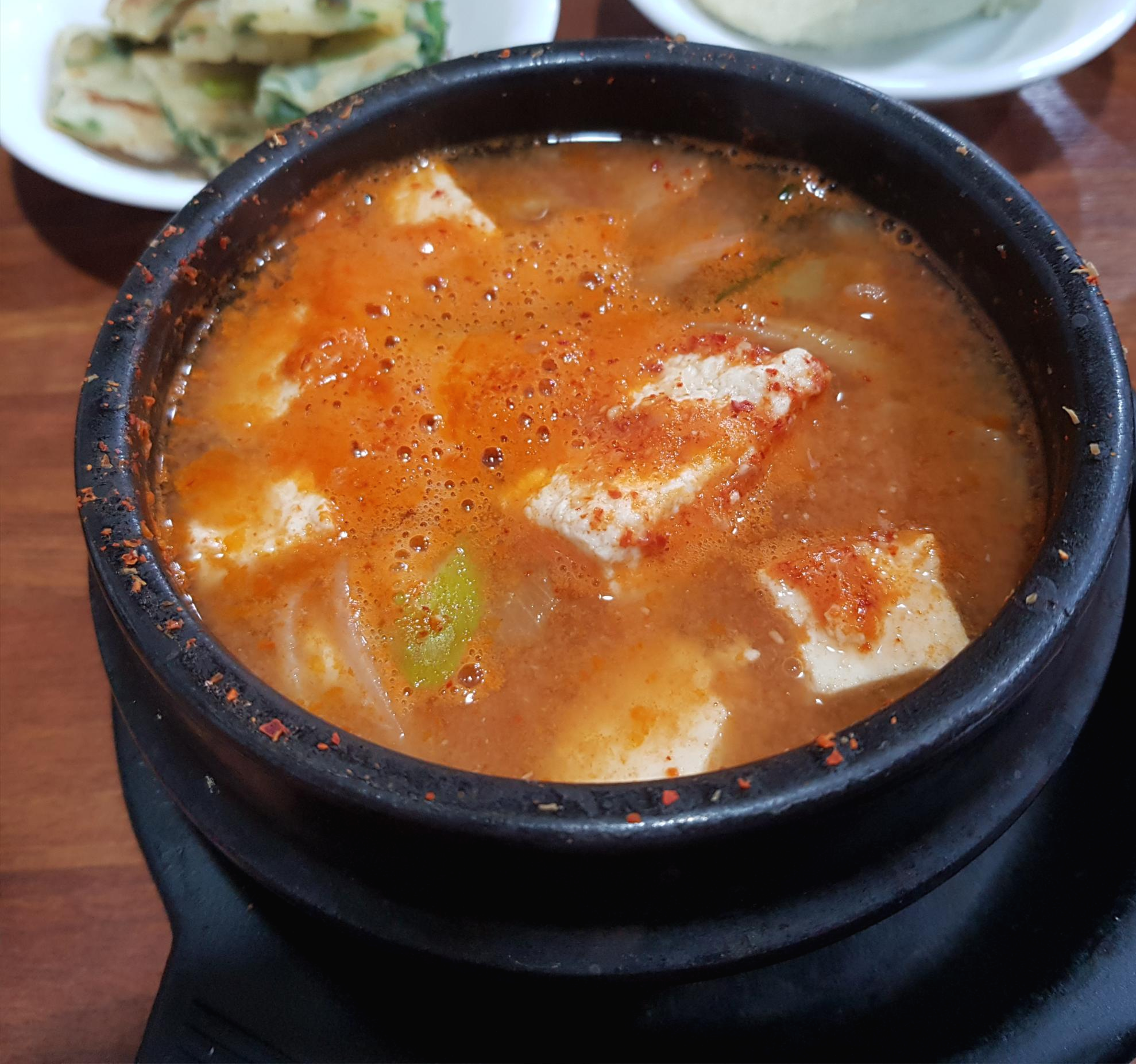 메인인 뜨끈뜨끈한 된장찌개가 나왔어요. 약간 매콤하긴 하지만 시원하고 단백하면서 맛있었습니다.