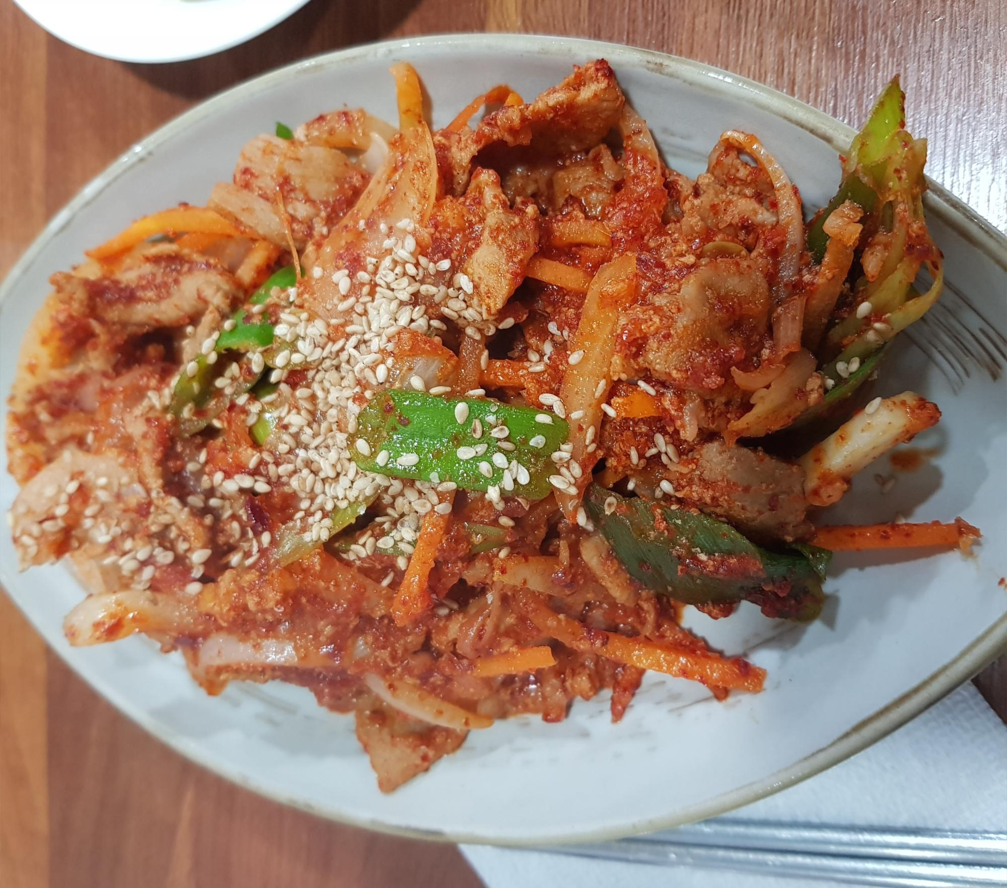 돼지두루치기도 함께 나왔어요. 사람들이 매운걸 좋아해서인지 양념을 너무 많이 하셨더라구요. 매운걸 못 먹는 저로서는 아쉽지만 맛만보고 딸아이에게 넘겼어요.
