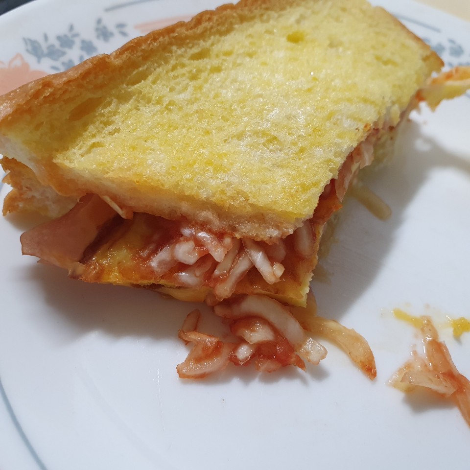 하지만 한 입 먹는 순간 음... 전자레인지에 데우니 빵이 흐물흐물 해져서 토스트 맛을 제대로 느낄 수가 없었어요.