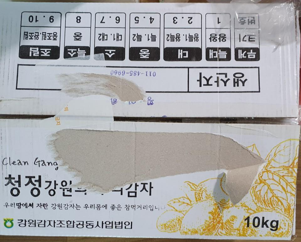 6일정도 기다리니 강원도 수미 감자 1박스가 도착했어요. 감자 상태는 최상은 아닌 것 같고 싹이 나기 시작한 것들도 있었어요.