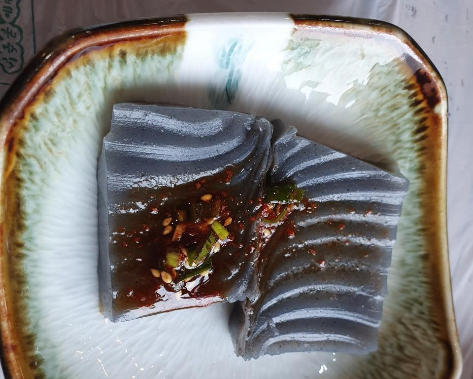 묵이 나왔는데 색이 참 예쁘더라구요. 일하시는 이모님게 여쭤보니 깨묵이라고 하시던데 한 입먹어보니 참 맛있더라구요.