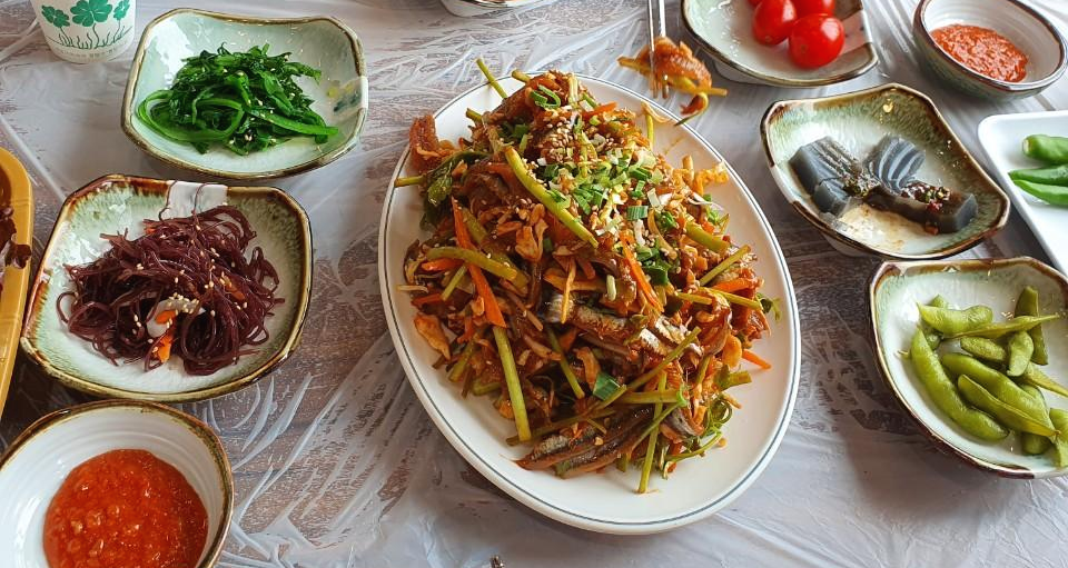 남편이 회사에서 퇴근하고 부모님을 모시고 왔기에 점심을 먹은 상태였지만 4명이라 멸치회를 대짜로 주문했습니다. 생멸치회도 있는데 아직까지는 못먹을 것 같아 멸치회 무침으로 시켰습니다.