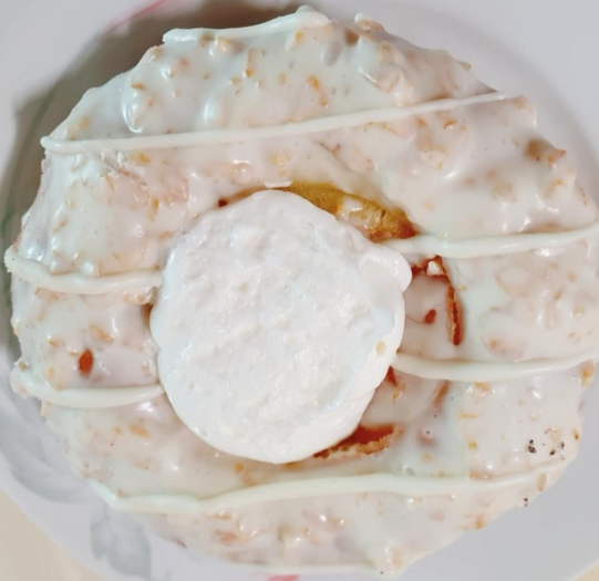 반으로 잘랐더니 가운데는 파여있고 중간에 우유크림이 올려져있어요.
