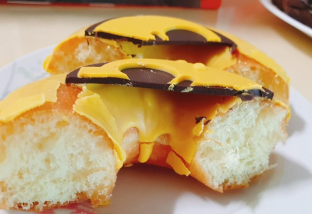 반을 잘랐더니 속에는 아무것도 안들었어요. 퍽퍽한 바나나 맛나는 도넛에 초콜릿이 올라간 정도. 맛있다기 보다는 그냥 평범한 도넛이에요.