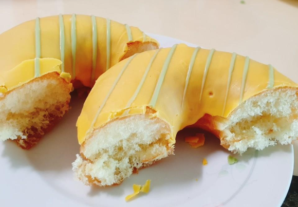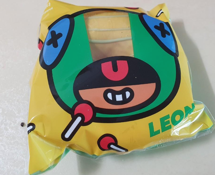 브롤스타즈 레온 링도넛은 겉에는 바나나향이 나는 초콜릿이 발라져있고 반으로 잘랐더니 아무것도 안들었어요.