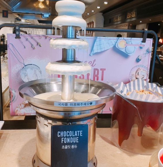 광안리 애슐리에서는 초코분수가 화이트 초코분수더라구요. 그래서 바닐라 아이스크림에 초코를 한국자 넣었더니, 맥도날드 초코콘 아이스크림이 되었어요! 정말 맛있었어요.