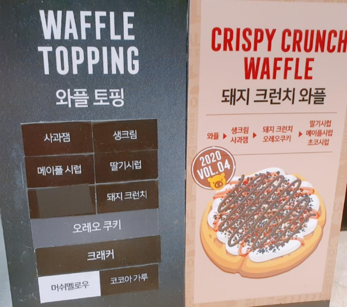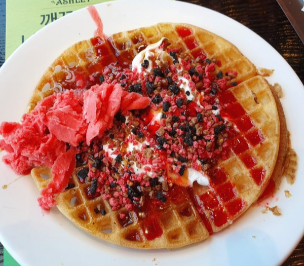 그리고 와플도 먹어보았어요. 돼지바 메뉴 레시피도 적혀있어서 한 번 만들어 보았어요. 오! 정말 달달하니 맛있었어요 ㅎㅎ 오늘은 칼로리 폭탄을 먹었으니 열심히 운동하는 걸로 ㅎㅎ,,,