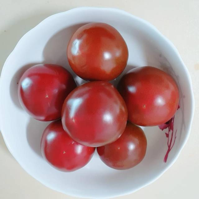 흑토마토(구마토)는 일반 토마토 보다 껍질이 단단하고, 향과 단맛이 강해서 노화방지,항산화 물질인 베타카로틴이 2배가 높습니다. 황산화 비타민 C는 일반 토마토보다 1.3배 높아 맛과 영양을 모두 가진 흑토마토입니다.