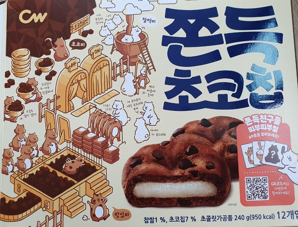종종 청우 쫀득초코칩 행사를 하던데, 저는 행사할때마다 사 먹을 것 같아요. 쫀득하고 촉촉한 초코칩의 조화가 정말 맛있더라구요. 단점은, 하나 먹으면 하나가 더 먹고싶어져, 한 자리에 다섯, 여섯개씩 뜯어먹고 있는 저 자신을 발견할때,,, 인것 같아요 ㅋㅋㅋ