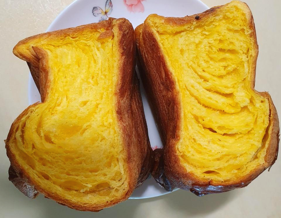 마지막으로 호박 패스트리 식빵입니다. 칼로리는1285kcal 호박이 들어가 칼로리가 낮을 거라 생각했는데 후덜덜합니다.