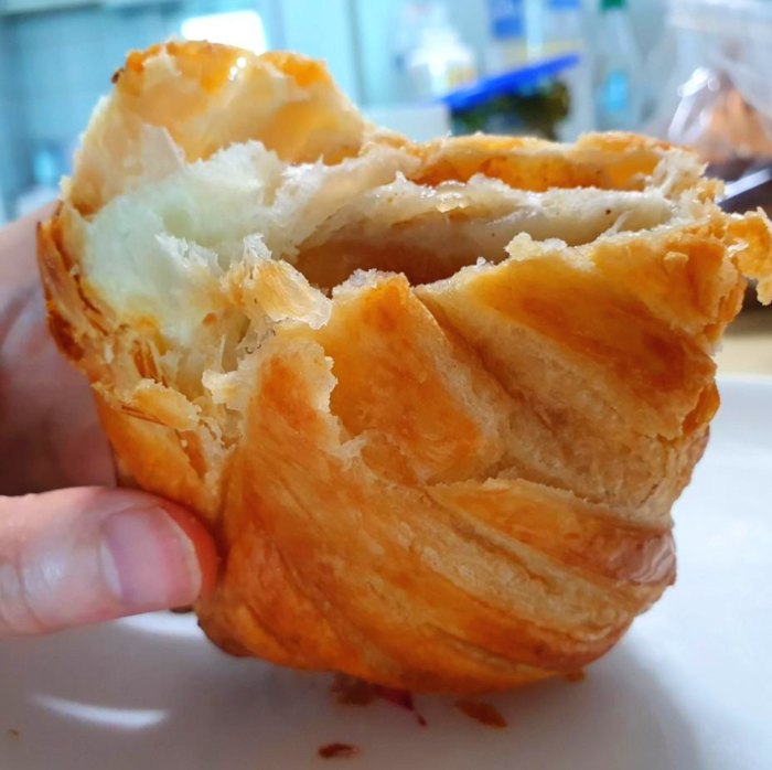 속에는 새콤달콤한 사과필링과 시나몬 향이 들어있어요. 한입 먹어보니 바삭하면서 사과 다이스가 씹히는 것이 정말 맛있었어요. 먹어보니 왜 인기있는 줄 알겠더라구요.