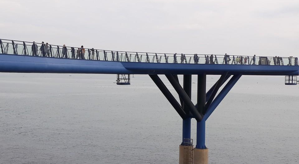 전망대 끝자락에는 반달모양의 강화유리 투명바닥을 설치해 바다위를 걷는 짜릿함을 느낄수 있으며 전망대에서 청사포의 해경경관과 일출, 낙조의 장엄한 풍광을 파노라마 조망으로 즐길 수 있어요.