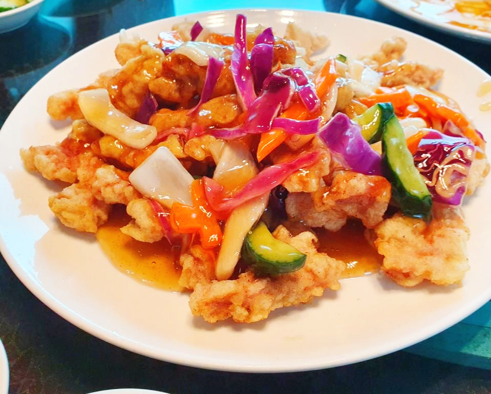 두번째로 나온 코스요리는 탕수육입니다. 이 집은 탕수육도 맛집이죠! 이 집은 요리가 전체적으로 저렴하고 맛있더라구요. 탕수육도 달달하면서 탕수육 특유의 시큼함이 잘 어울어져 정말 맛있어요.
