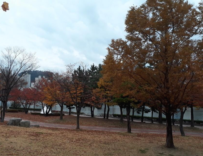 가을이라 나뭇들이 예쁘게 옷을 입고 있어서 걷는 내내 가을 풍경을 구경할 수있어서 좋았어요.