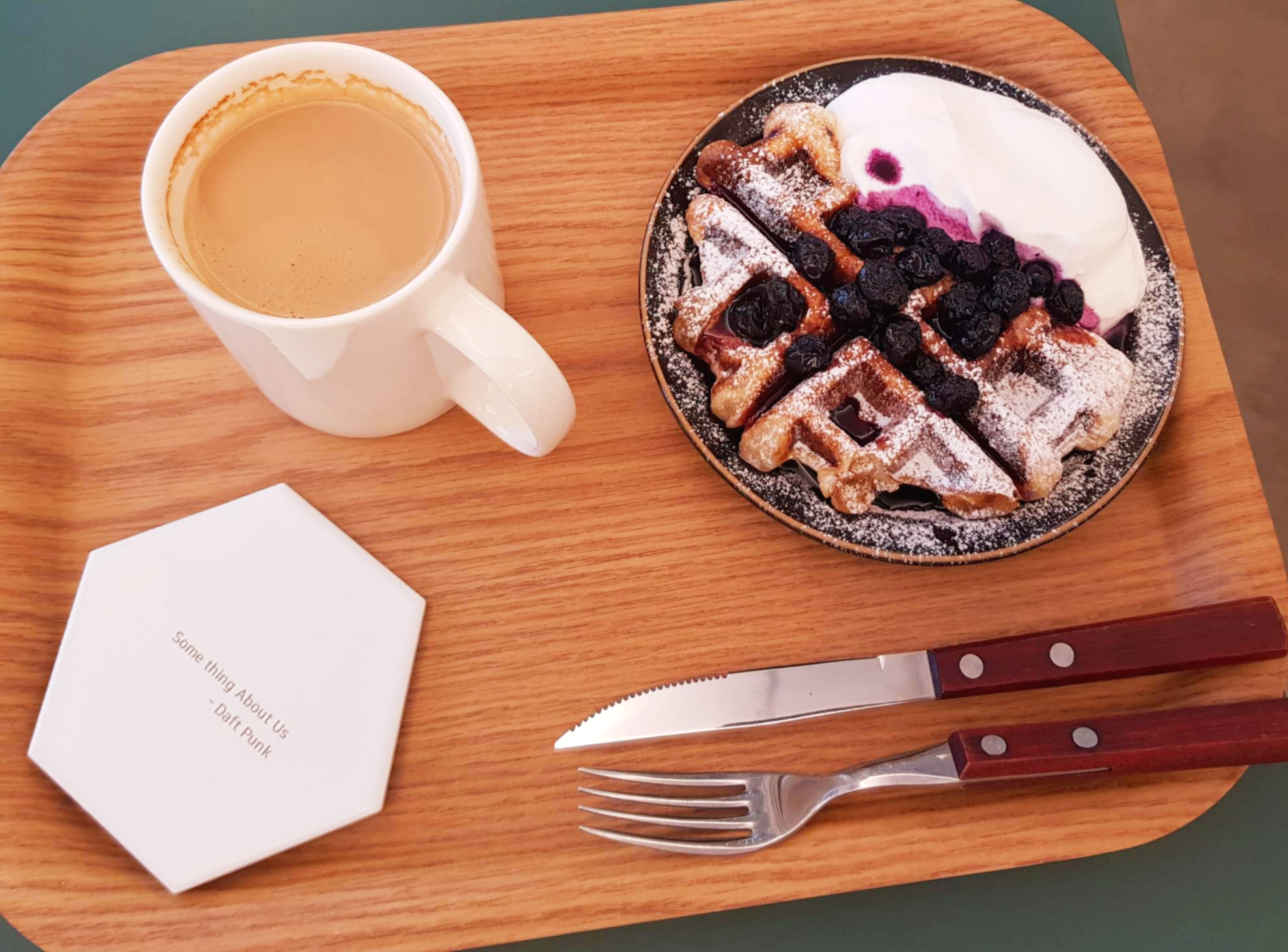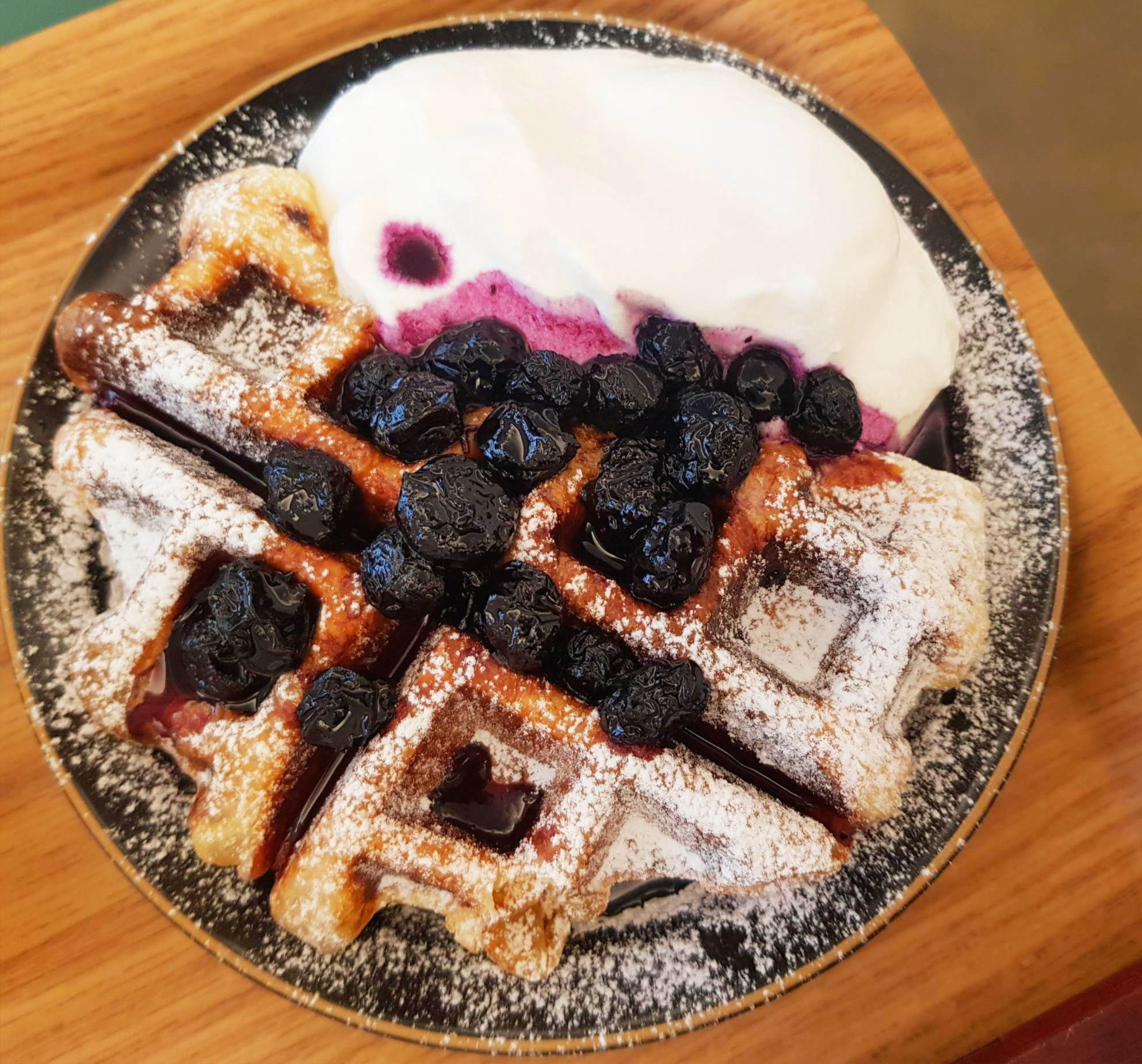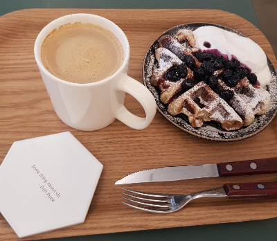 이건 블루베리 크로와플이예요. 역시 소문대로 블루베리 크로와플 정말 맛있더라구요. 블루베리 시럽이 잔뜩 올라갔는데 여기서 직접 만든다고 합니다! 바삭바삭한 크로와플과 새콤달콤한 블루베리 거기다 달콤한 휘핑크림까지 올리니 정말 좋았어요.