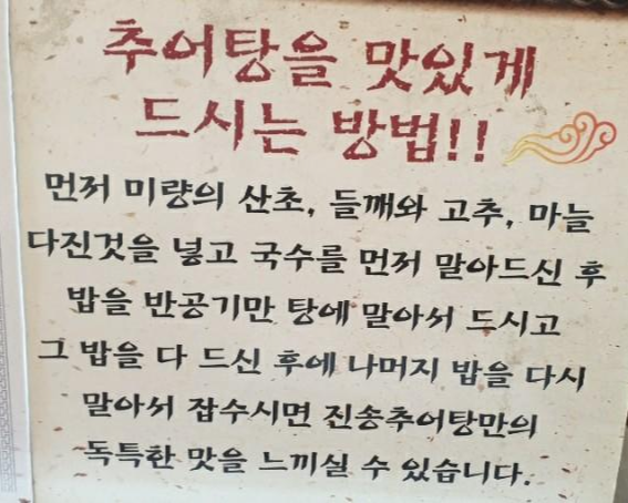 추어탕 맛있게 먹는 방법도 나와 있어요.