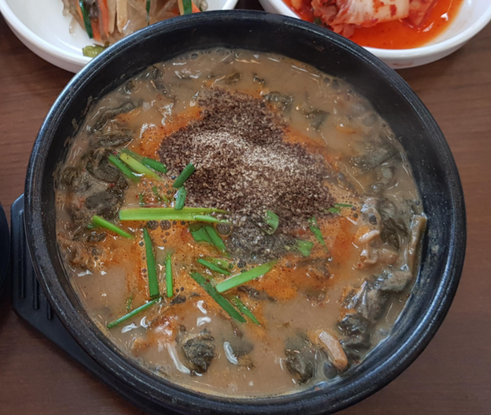 저는 부추랑 마늘도 넣고 산초도 넣고 들깨가루도 듬뿍 넣어 먹었어요. 매콤하게 드시고 싶으면 고추를 넣어 드셔도 좋을 것 같아요.