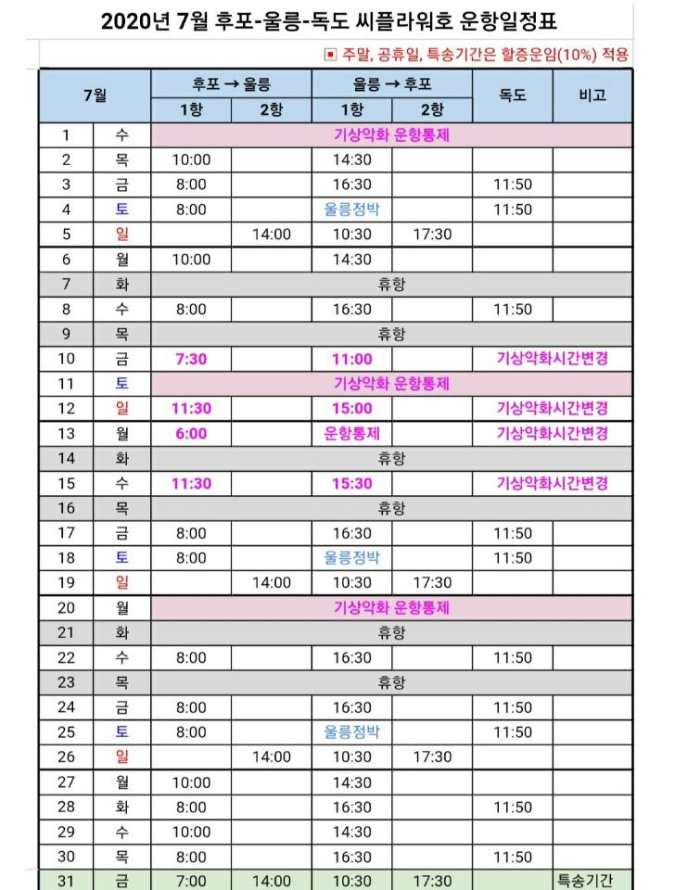 울릉도가 바다날씨에 따라 운항통제가 되는 날이 많다고들 하더라구요. 그날 날짜가 잡혀도 기상악화가 되어버리면 배가 뜨지 않으니 날씨를 잘 택해 가야하겠어요.