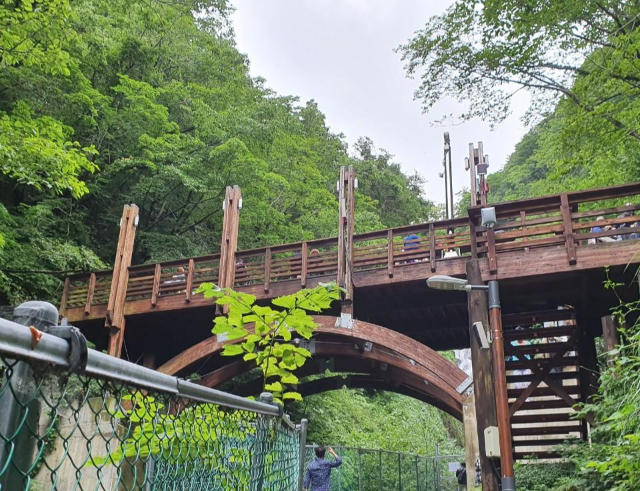 드디어 봉래 폭포에 도착했어요. 계단으로 올라가 봉래폭포를 구경하며 사진을 찍을 수 있는 장소가 마련되어 많은 사람들이 찾는 곳입니다.