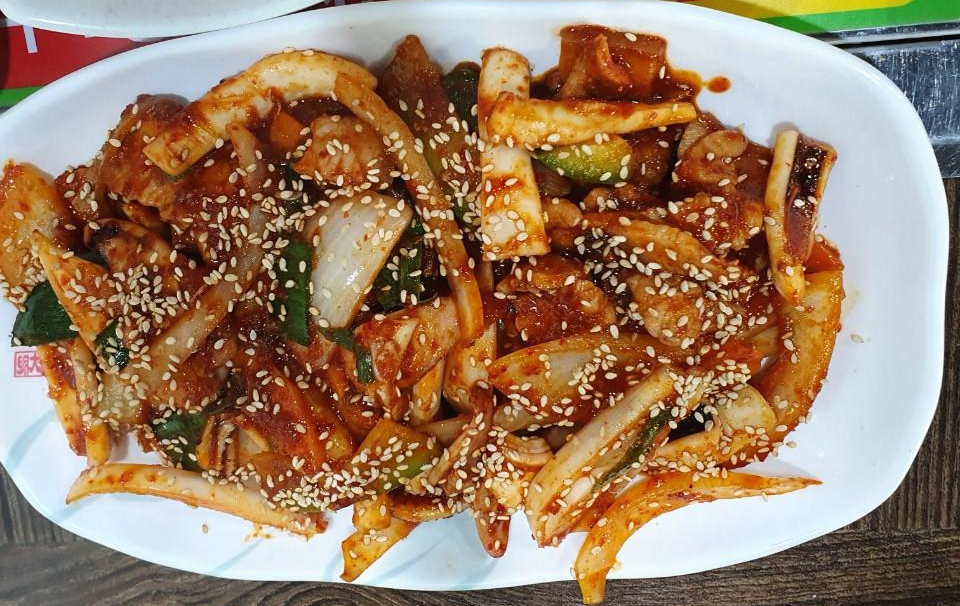 고대하던 오삼불고기가 나왔어요. 사실 여태 먹었던 오삼불고기들에 비하면 양이 적어서 실망했어요.