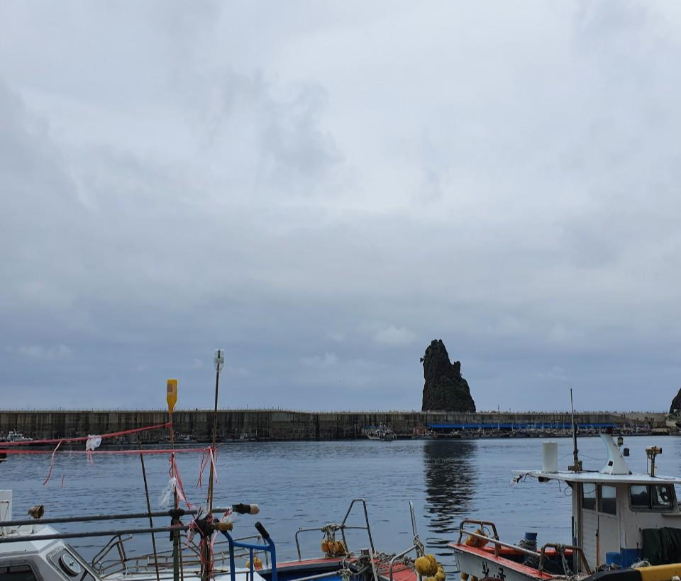 식사를 하고 조금 걸어나오시면 저동항의 마스코트 촛대바위가 자리잡고 있어요. 촛대바위가 일출보는 장소로도 유명하답니다.