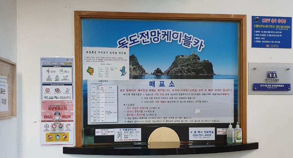 독도 케이블카에서 내리니 매점이 자리잡고 있습니다. 간단한 먹을거리와 커피 등도 판매하고 선물들도 판매하고 있었습니다.