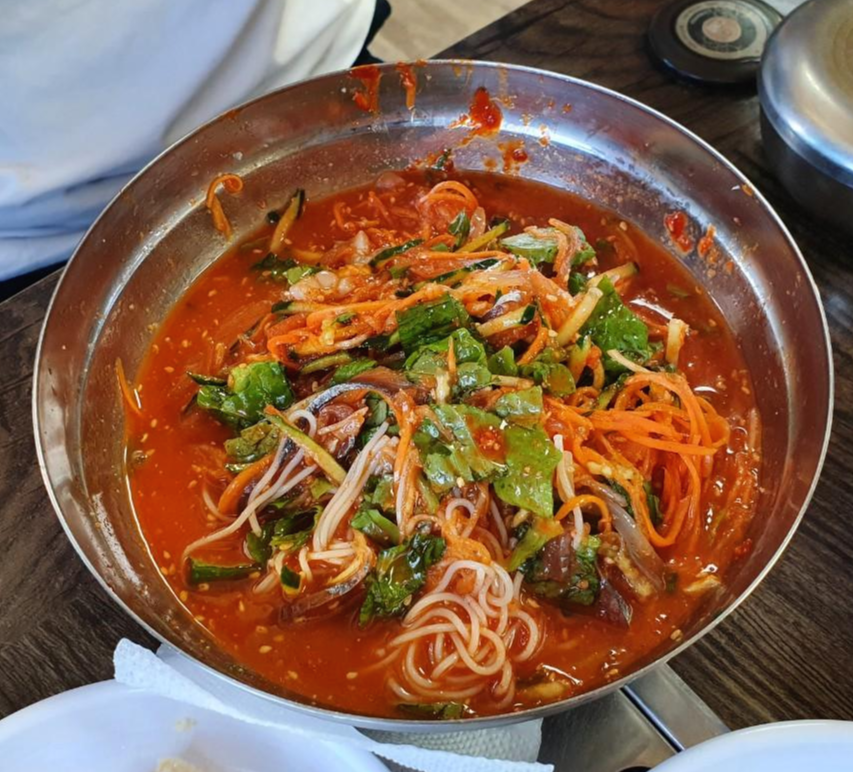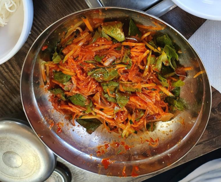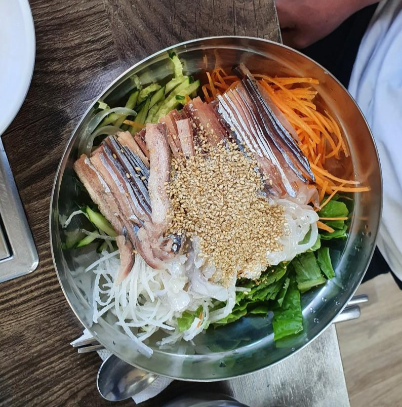 주문한 꽁치물회가 나왔습니다. 꽁치물회라 태어나서 꽁치를 이용해 물회를 먹는 것 처음보게되었어요.