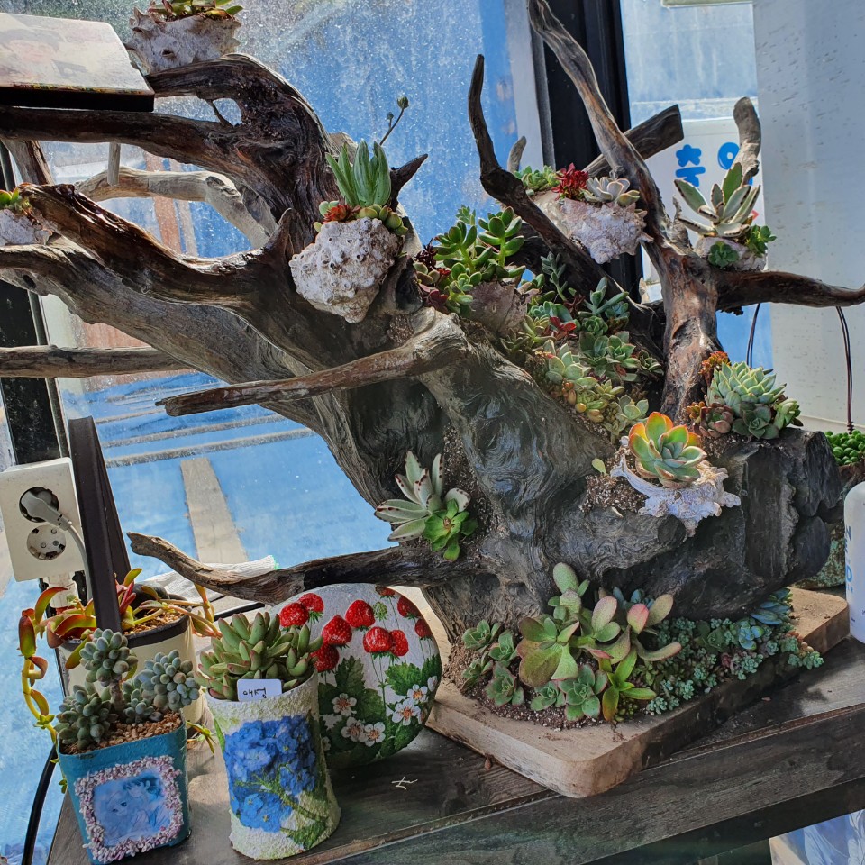 계단을 올라가니 나무를 이용해 다육식물을 이쁘게도 가꾸었더라구요. 사모님 솜씨가 예사롭지 않네요.