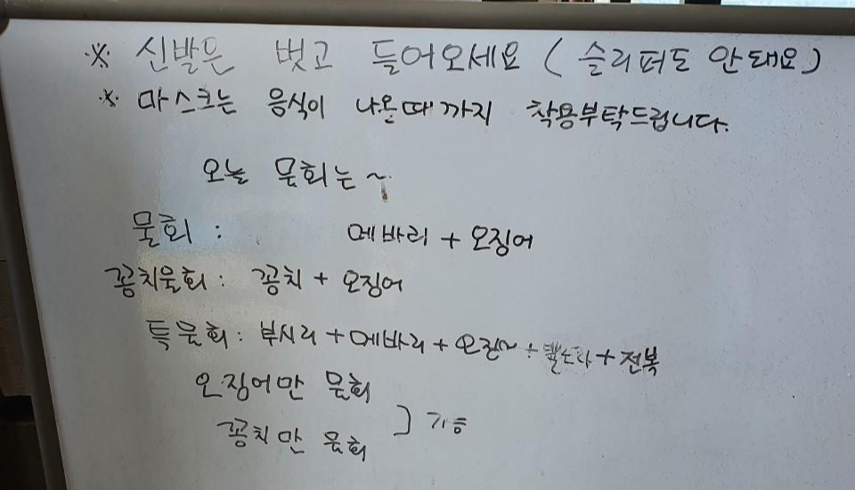 오늘의 물회는 메바리+오징어, 꽁치물회: 꽁치랑 오징어가 나온다고 합니다.