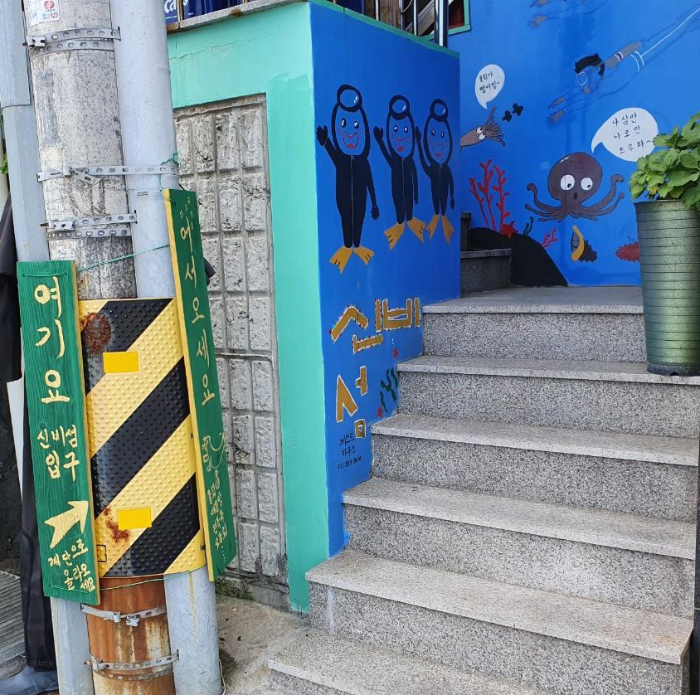 들어가는 입구도 귀여운 해녀 캐릭터와 문어캐릭터가 반갑게 맞이합니다.