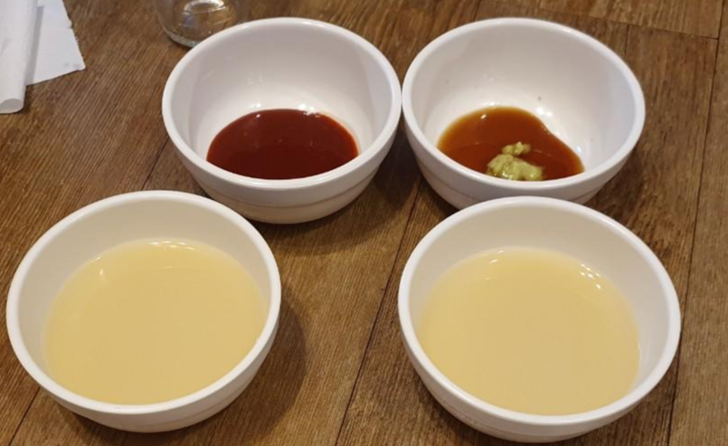 싱싱한 회를 먹기좋게 잘라왔습니다. 집에서 가져온 초장과 회집에서 주신 와사비도 풀어 먹을 준비를 합니다.