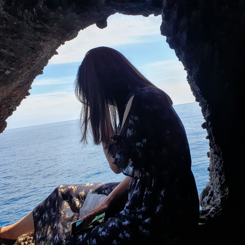 사진찍기좋은 포인트가 있어 딸아이를 모델로 한 컷찍어봅니다. 자연이 만들어준 장소라 바다와 너무 잘어울려 다들 한 컷씩 사진을 찍고 갑니다. 이렇게 찍다보니 시원한 바람도 불어주어 땀도 식혀줍니다.