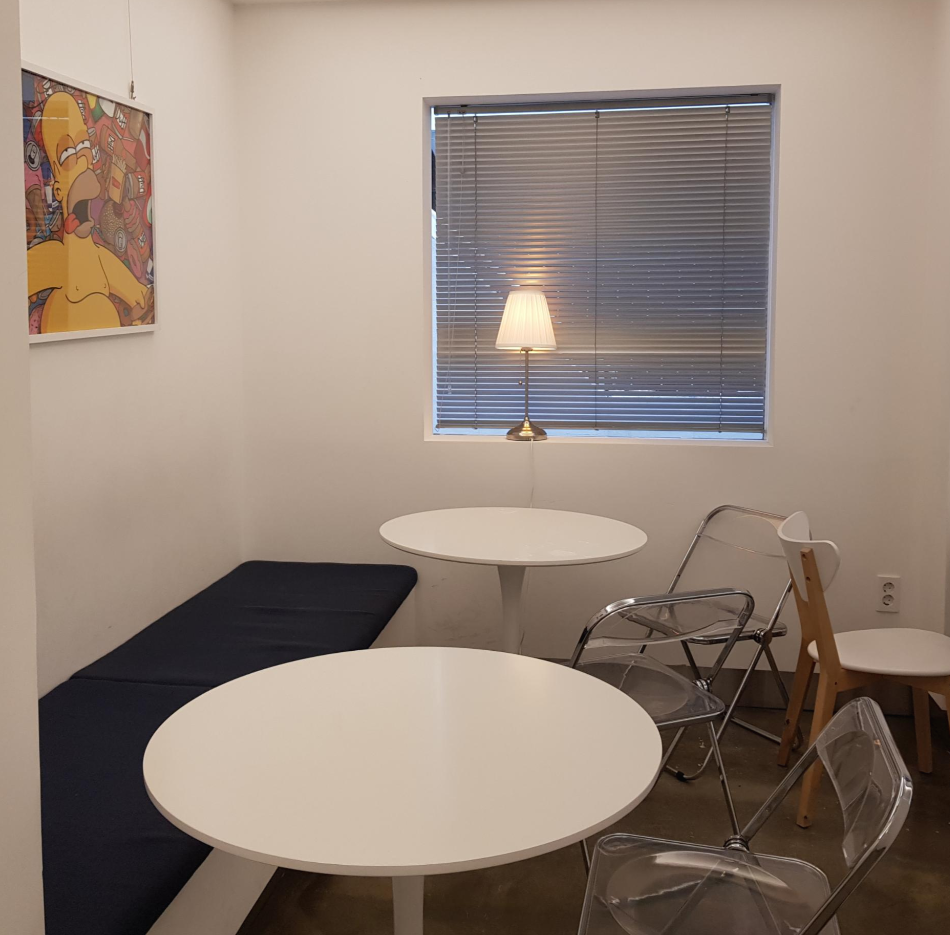 플랫폼나인은 1층과 2층이 있는데요, 오늘은 1층을 위주로 찍어봤어요. 플랫폼나인 내부 인테리어가 깔끔하게 되어있고, 벽면에 심슨가족들도 등장하고 편안한 분위기였어요. 학생들에게 참 인기가 많을 것 같은