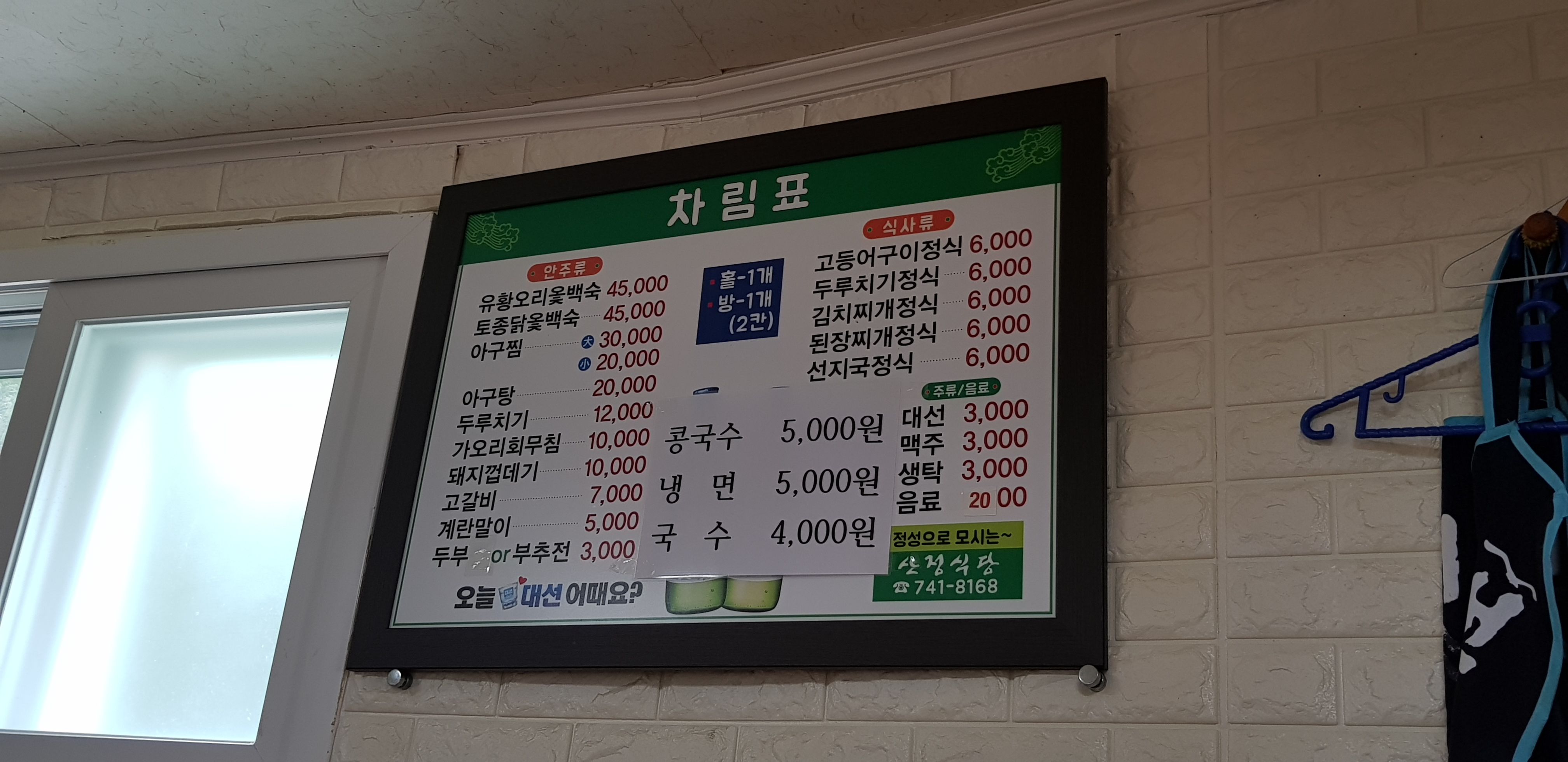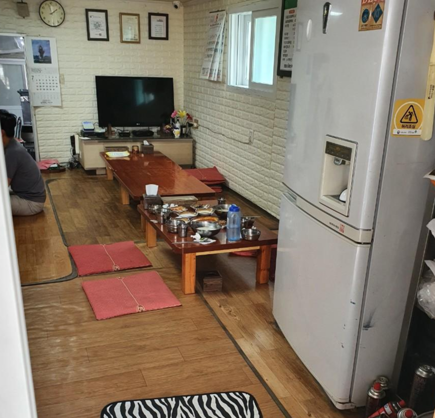 산정식당은 그냥 동네에서 흔하게 보는 그런 식당입니다. 들어가니 홀과 방이 자리잡고 있었어요.