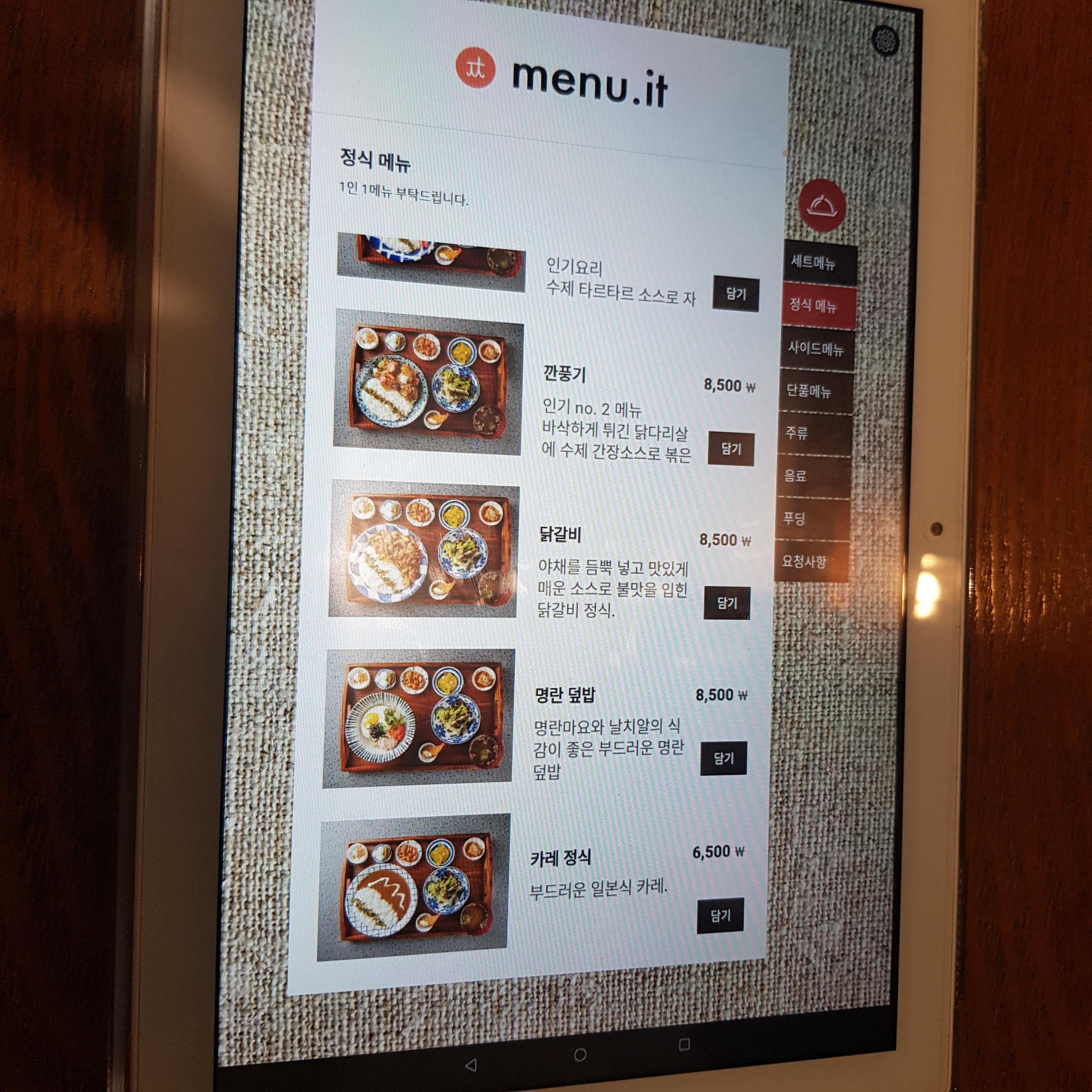요즘 식당들은 메뉴판이 종이가 아니라 테블릿이더라구요ㅎㅎ 시대가 많이 변한 거겠죠.