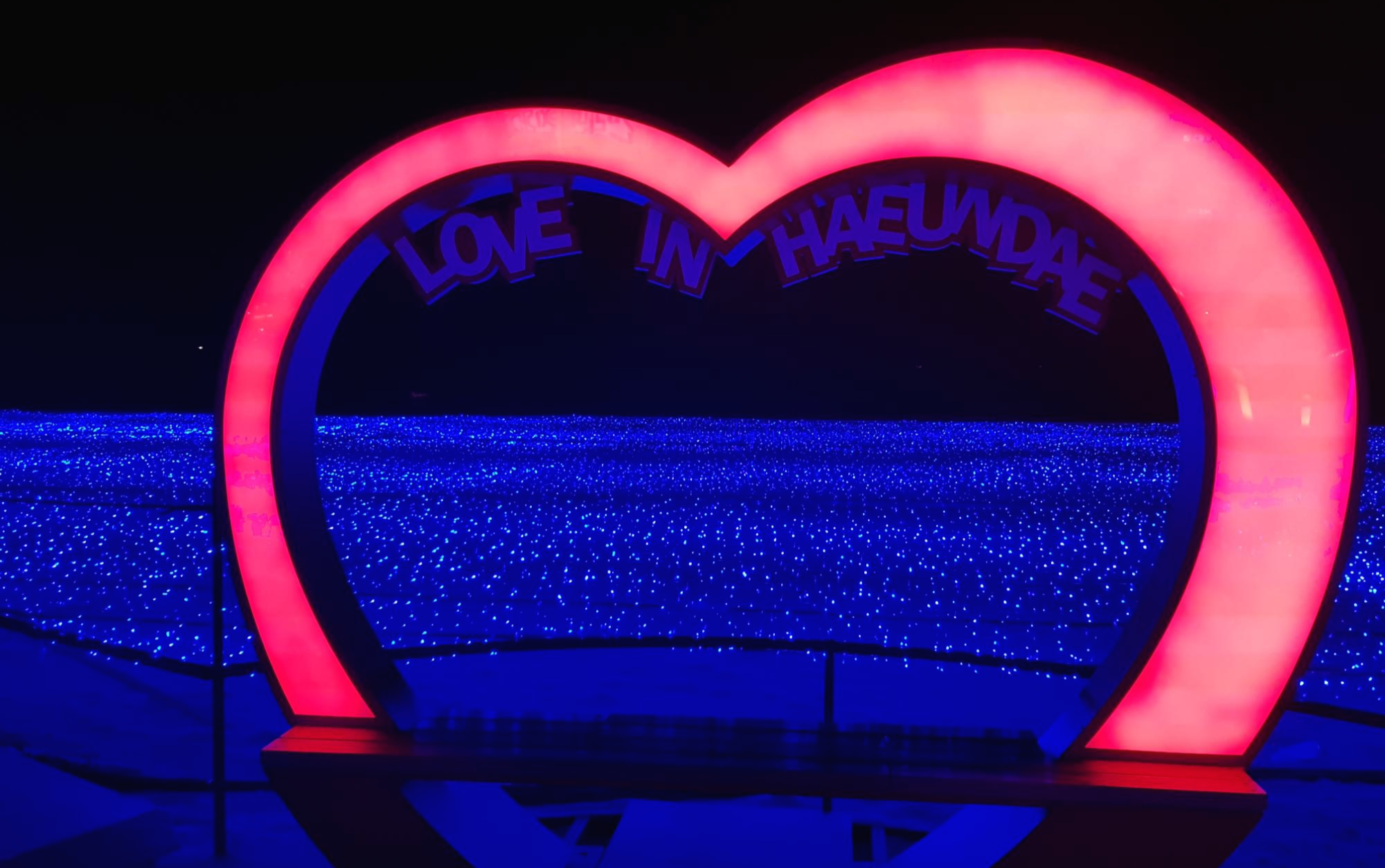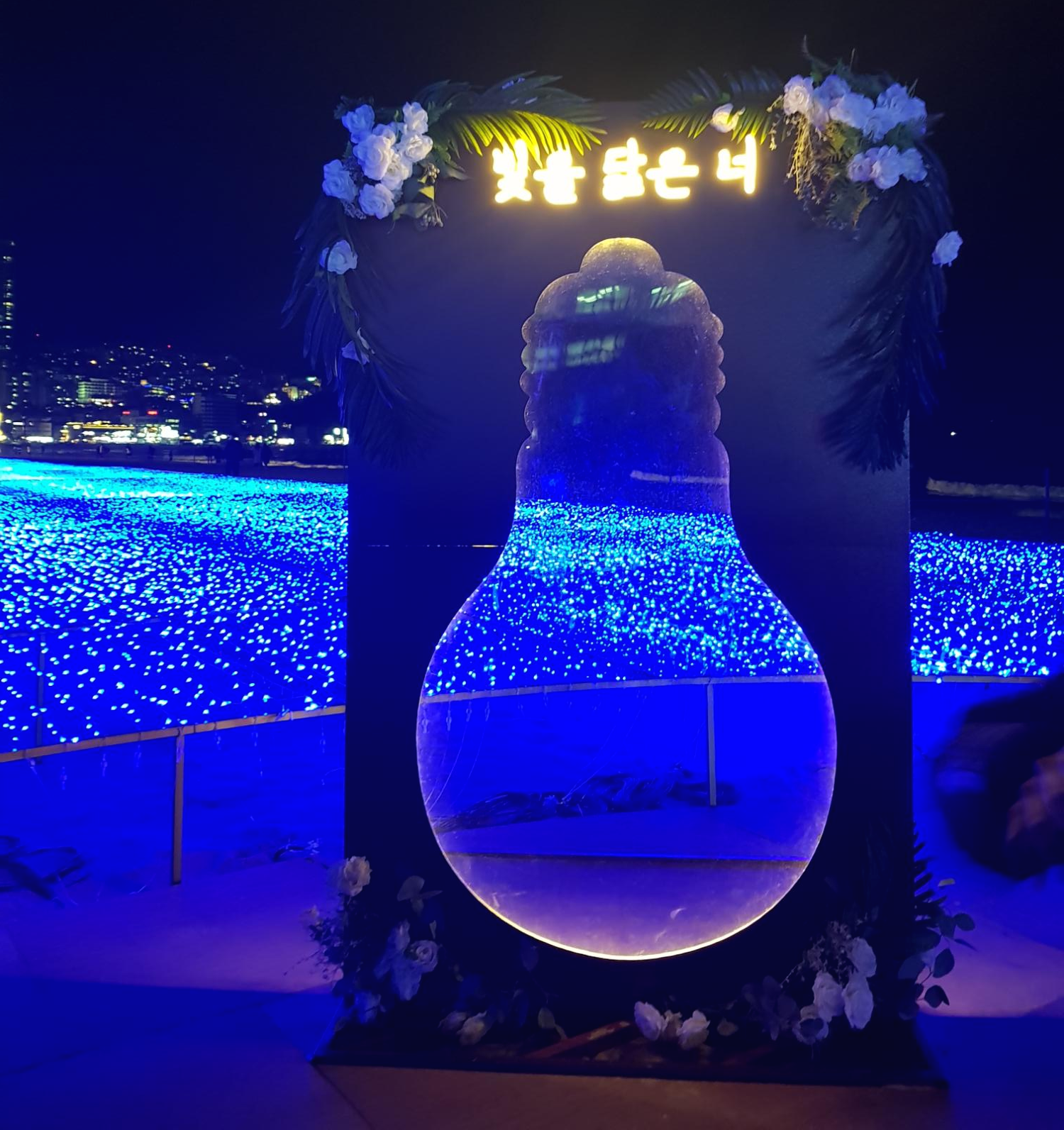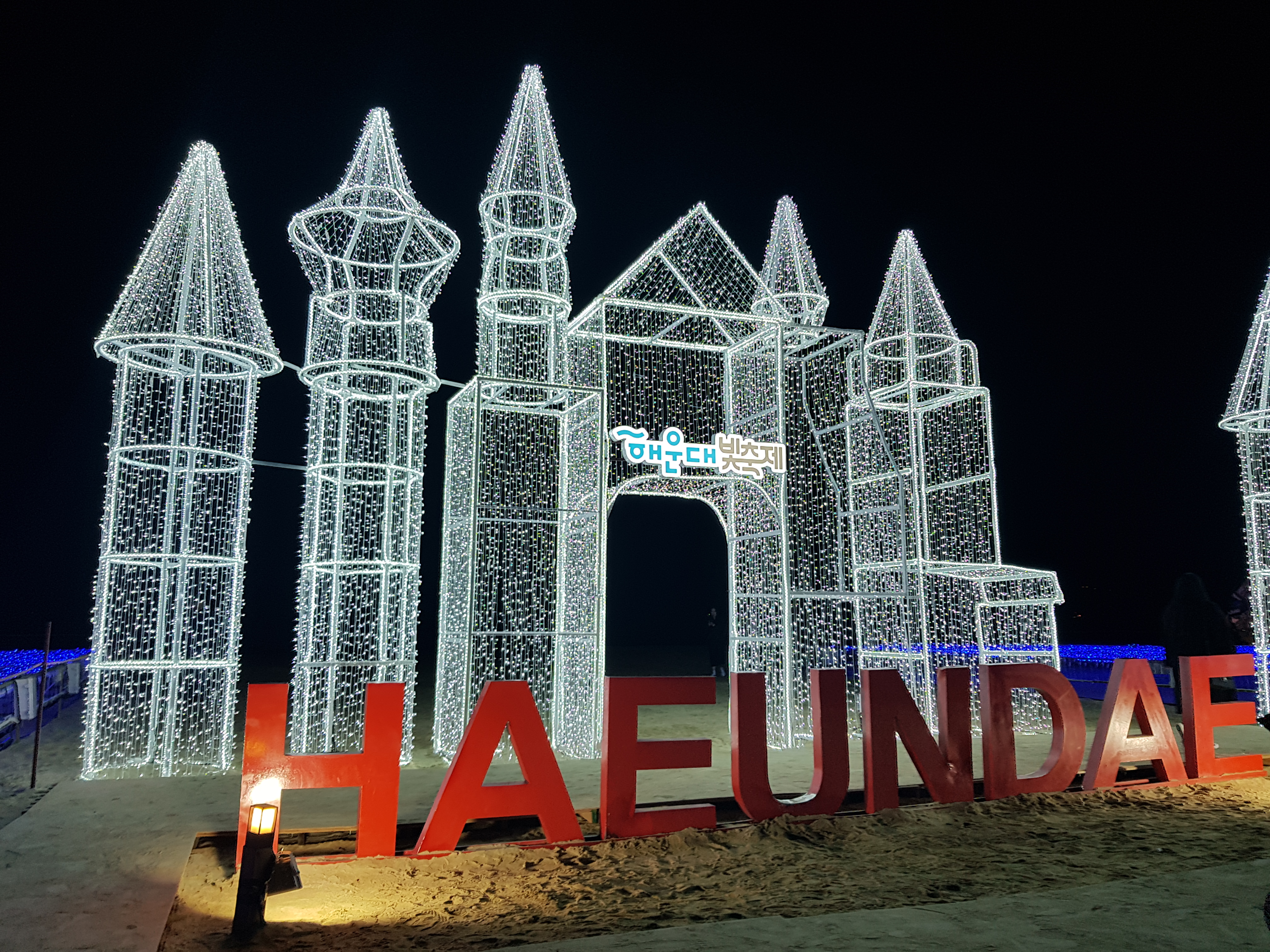 해운대 백사장위에 펼쳐진 불빛과 예쁘게 사진 찍을 수 있는 포토존이 있어 어우러져 너무 예뻤어요.