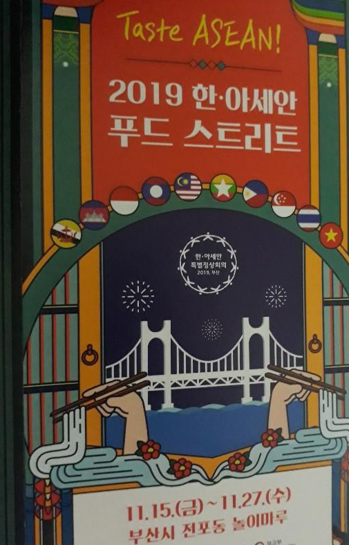 2019년 한 아세안 특별 정상회의를 기념하기 위해 열리는 한 아세안 푸드 스트리트는 아세안 10개국의 음식과문화를 부산 전포동 놀이 마루에서 만나 볼 수 있는 자리를 마련했었어요.