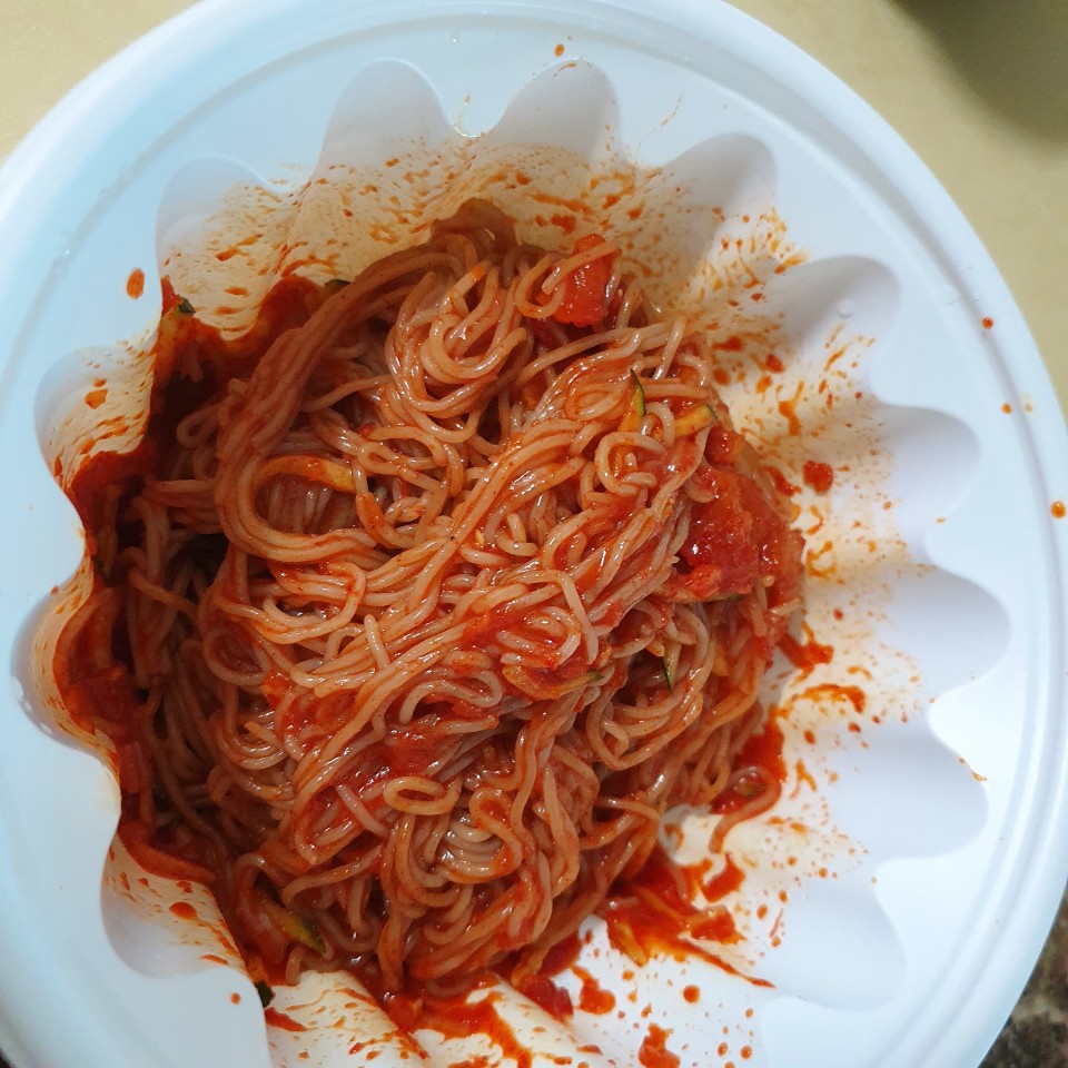 물 냉면 곱빼기라 양이 정말 푸짐하게 왔습니다. 새콤달콤한 양념에 시원한 육수가 정말 잘어우러져 30년 전통의 장산밀면의 맛을 느낄 수 있는데요. 직접가서 먹으면 면발이 탱글탱글해 더 맛있었을텐데 남편이 가져오느라 몇십분이 지나 면발이 조금 불었어요.ㅎㅎ