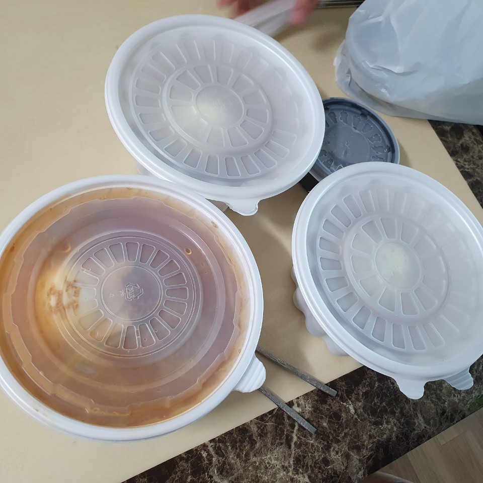1회용 용기에 깔끔하게 잘 담겨져왔습니다. 사실 환경오염시키는 것 같아 조금 찔리긴 합니다.