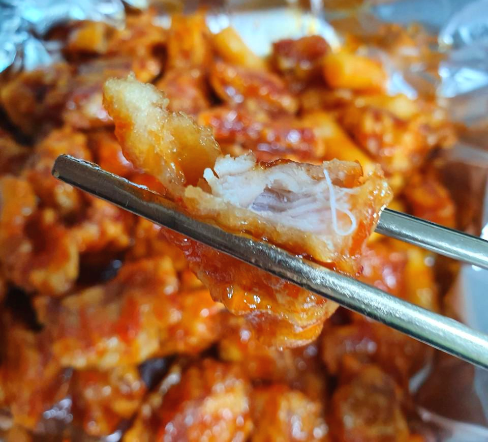 한 입 먹어보니 바삭바삭하고 달콤한 소스가 잘 어우러져 먹는 식감도 좋았고 맛있었어요. 게다가 따끈따끈하니 더 맛있더라구요. 살이 퍽퍽하지도 않고, 무엇보다도 좋았던 점은 한입 크기로 되어 있어 먹기 참 편한 것 같아요