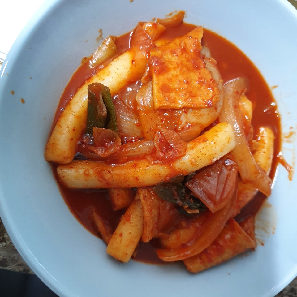 순대만 먹으면 느끼할 수 있겠다 싶어 딸아이가 먹고 있을때 떡볶이를 조금 매콤하게 바로 만들어 줬어요.