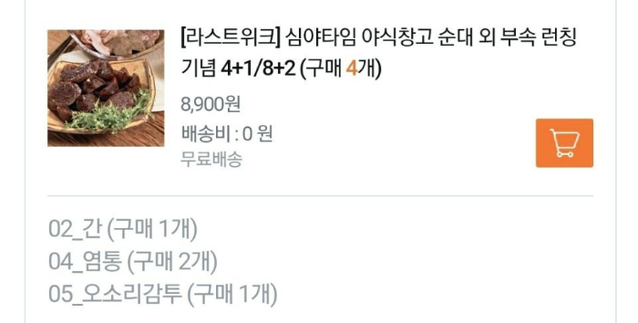 그래서 이번에 순대빼고 간 1개, 염통 2개, 오소리 감투 1개를 주문했어요.