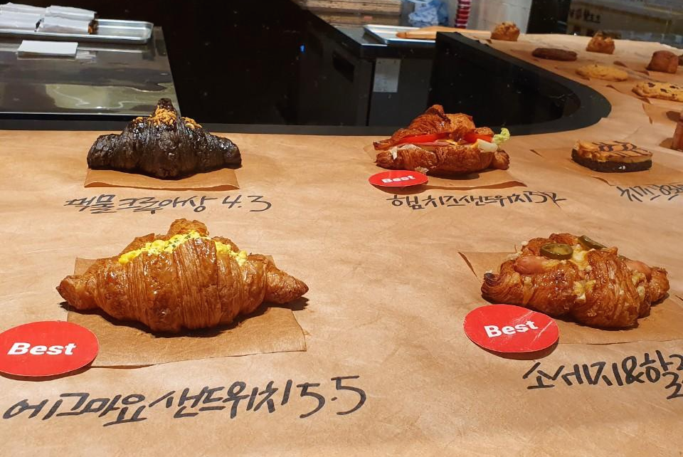 먹물크로와상, 에그마요 크로와상 햄치즈 샌드위치 등 크로와상들이 다양하게 많긴한데 가격을 보니 후덜덜 합니다.